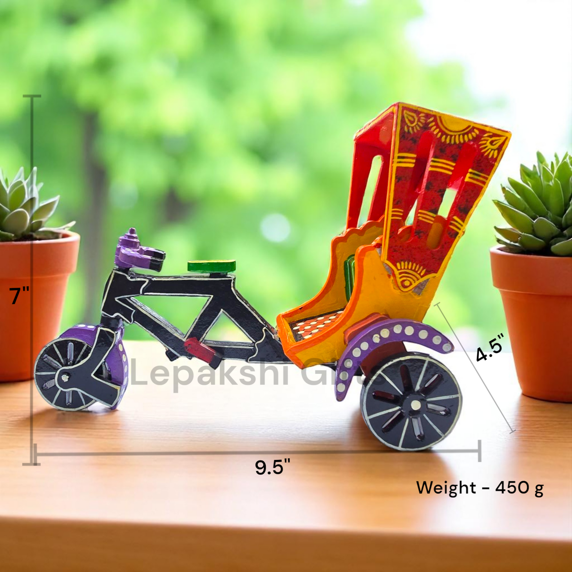 Rickshaw: A charming wooden rickshaw statue that captures the essence of traditional urban life, showcasing intricate craftsmanship and vintage appeal in a compact form.